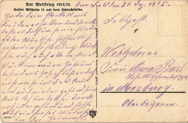 Kaiser Wilhelm II auf dem Schlachtfelde / WWI German military art postcard with Wilhelm II. Wenau-Postkarte No. 89.