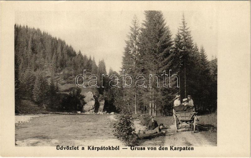 Kárpátalja, Üdvözlet a Kárpátokból! út lovaskocsival. Balázs Soma kiadása (Ungvár) / Gruss von den Karpaten / Zakarpattia Oblast / Transcarpathian road with horse-drawn carriage