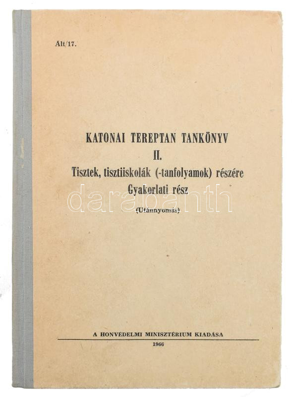 Katonai tereptan tankönyv II. Tisztek, tisztiiskolák (-tanfolyamok) részére. Gyakorlati rész. Bp., 1966., Honvédelmi Minisztérium. Kiadói félvászon-kötés, kissé kopott borítóval.<a href="https://www.darabanth.com/hu/gyorsarveres/431/kategoriak~Konyv