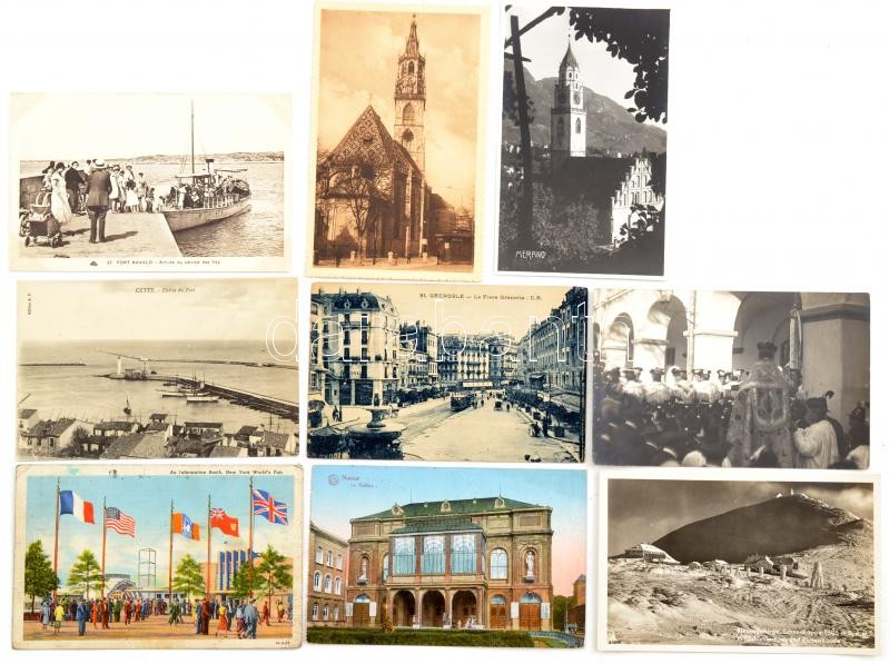 Kb 740 db régi külföldi városképes lap cipős dobozban. Érdekes vegyes anyag!!