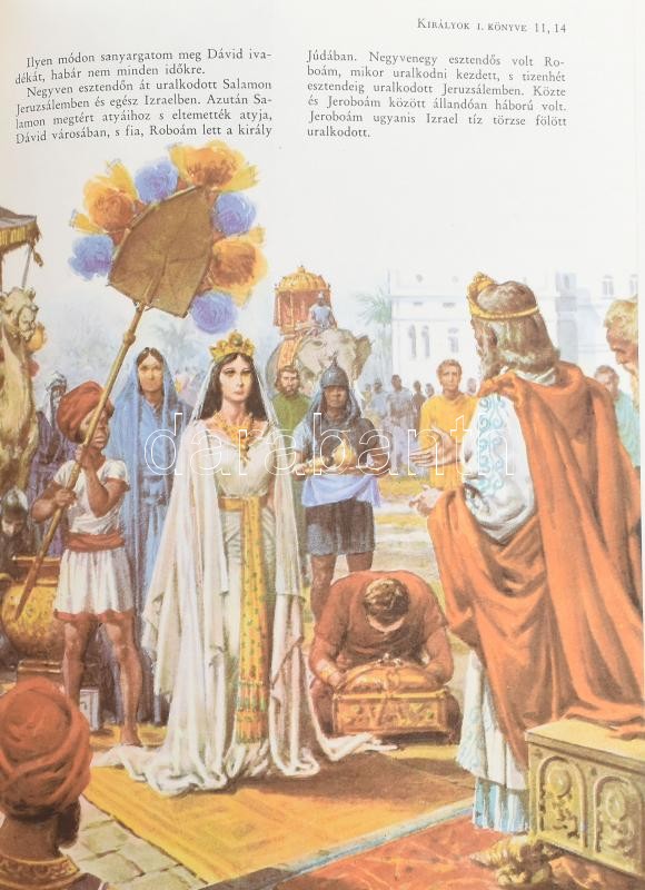 Képes Biblia. Szerk.: Jung Tamás.Zrenjanin, 1974, Bánáti Apostoli Kormányzóság. Kiadói egészvászon kötés, sérült gerinccel, előzéklap kissé foltos, címlapon tollas névbejegyzéssel.<a href="https://www.darabanth.com/hu/gyorsarveres/423/kategoriak~Kon