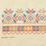 Kézzel rajzolt hímzésminta-album (erdélyi szász, kalotaszegi, buzsáki, stb.), harántalakú egészvászon-kötésben, sérülésekkel, 19×25 cm