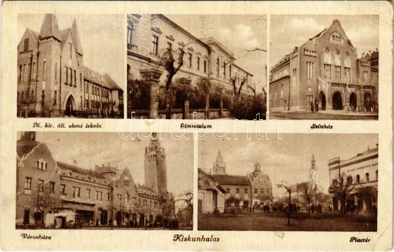 Kiskunhalas, M. kir. állami elemi iskola, Gimnázium, Színház, Városháza, Piactér (fa)