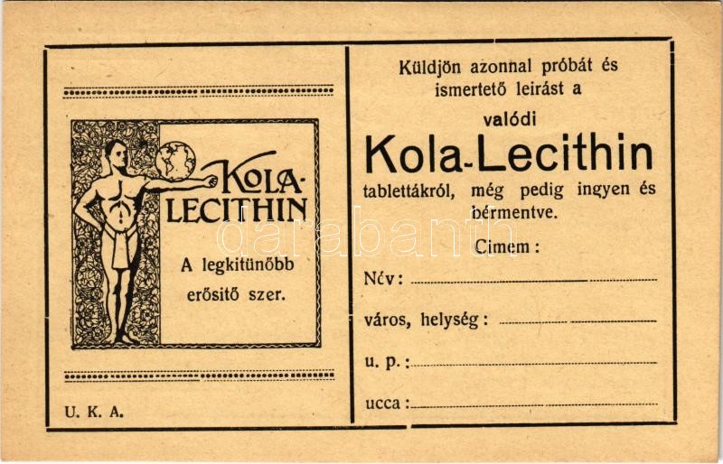 Kola-Lecithin. Opera gyógyszertár gyógyszer reklám / Hungarian pharmacy and medicine advertisement (EK)<a href="https://www.darabanth.com/hu/gyorsarveres/415/kategoriak~Kepeslapok/Reklam~1000076/Kola-Lecithin-Opera-gyogyszertar-gyogyszer-reklam-Hung