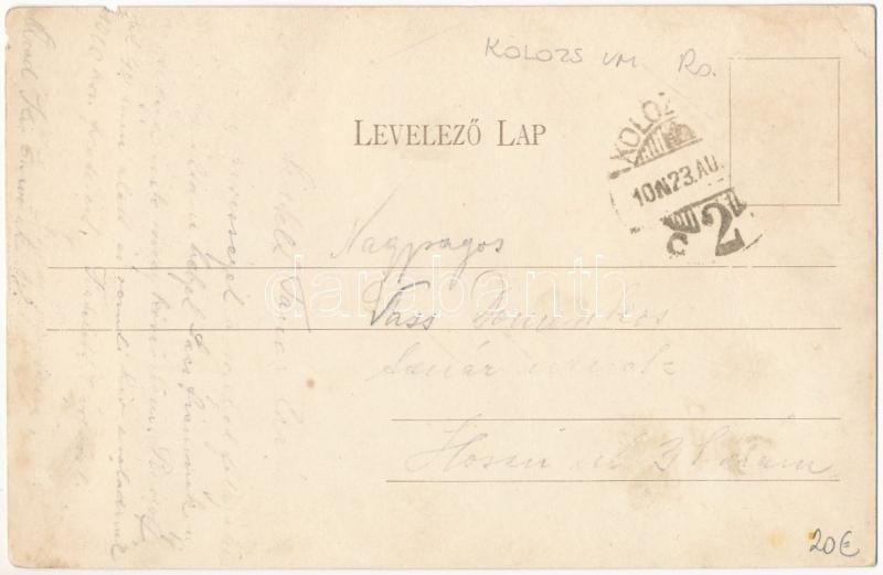 Kolozsvár, Cluj; MÁV ‘Összhang’ zászlószentelési ünnepélye 1903 augusztus 16-án, részvénytársaság, Fogászati műterem, Farkas Ignác, Herman Gyula, Reichelt Mihály és Janovitz Géza üzlete, Párisi Nagyáruház. Dunky fivérek