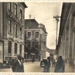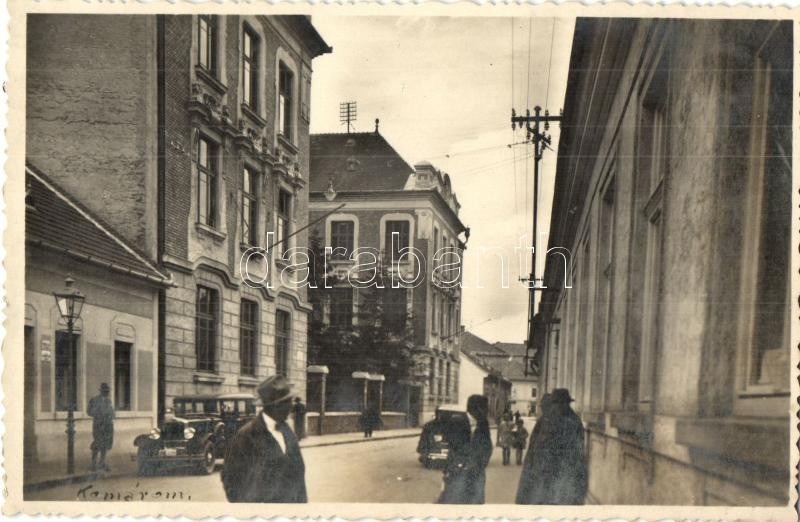 Komárom, Komárnó; Gimnázium / grammar school and automobile (ragasztónyom / gluemark)