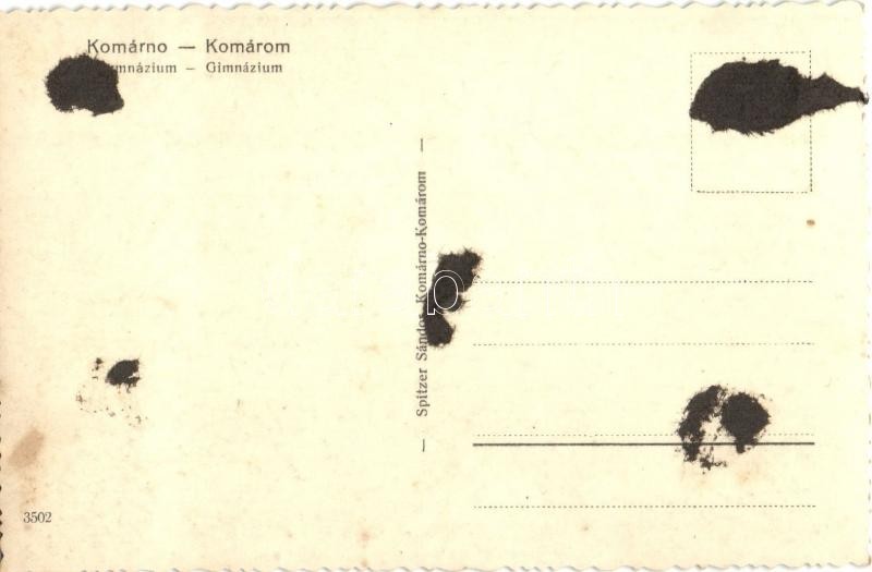 Komárom, Komárnó; Gimnázium / grammar school and automobile (ragasztónyom / gluemark)<a href="https://www.darabanth.com/hu/gyorsarveres/415/kategoriak~Kepeslapok/Felvidek~1000007/Komarom-Komarno-Gimnazium-grammar-school-and-automobile-ragasztonyom-g