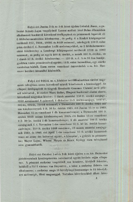 Kőrözvény 1864-ből. Kőrözvény 1864-ből.