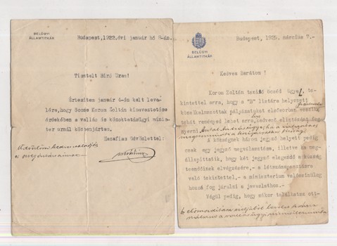 Kószó István (1861-1932) Kószó István (1861-1932) belügyi államtitkár levelei szegedi bíró ismerőséhez 1922-1925-ből, 6 db.