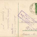 16642. tétel:1938 Szlovák dísztávirat lap, Pozsony magyar lesz felülragasztással és Komárom visszatért bélyegzéssel. 1938 Slovak decorative telegram sheet, Bratislava becomes Hungarian overprint and Komárom returned cancellation.