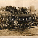 Magyar vasutasok és gőzmozdony, vonat / Hungarian railwaymen and locomotive, train. photo (fl)
