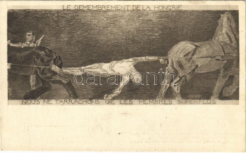 Magyarország földarabolása ciklus I. képe: ‘Mi csak a fölösleges végtagjait szakgatjuk le!’ Kiadja Magyarország Területi Épségének Védelmi Ligája / Dismemberment of Hungary. We are only tearing off the superfluous limbs! Hungarian