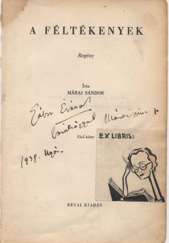 Márai Sándor Márai Sándor: A féltékenyek I-II. kötet. Gábor Évának dedikált példány.