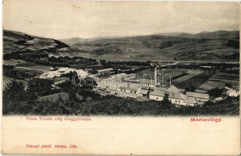 Máriavölgy, Sárosmáriavölgy (Kőtelep, Kruzslyó, Kruzlov); Pausz Tivadar cég üveg gyár telepe. Divald Adolf 193. / glass factory