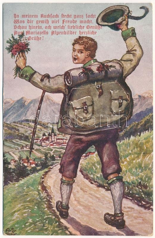 Mariazell. Leporellocard with hiking boy<a href="https://www.darabanth.com/hu/gyorsarveres/415/kategoriak~Kepeslapok/Ausztria~1000018/Mariazell-Leporellocard-with-hiking-boy~II2421772/?utm_source=affiliate&utm_medium=mutargy&utm_campaign=allando" ta