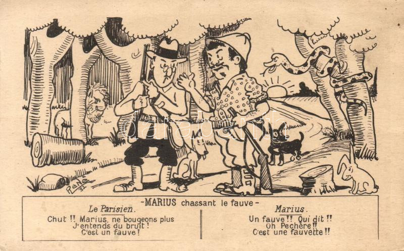 ‘Marius chassant le fauve’ / Marius chasing fawn, hunter, humour, s: Rene (EK)<a href="https://www.darabanth.com/hu/gyorsarveres/417/kategoriak~Kepeslapok/Vadasz~1500078/Marius-chassant-le-fauve-Marius-chasing-fawn-hunter-humour-s-Rene-EK~II1243276/