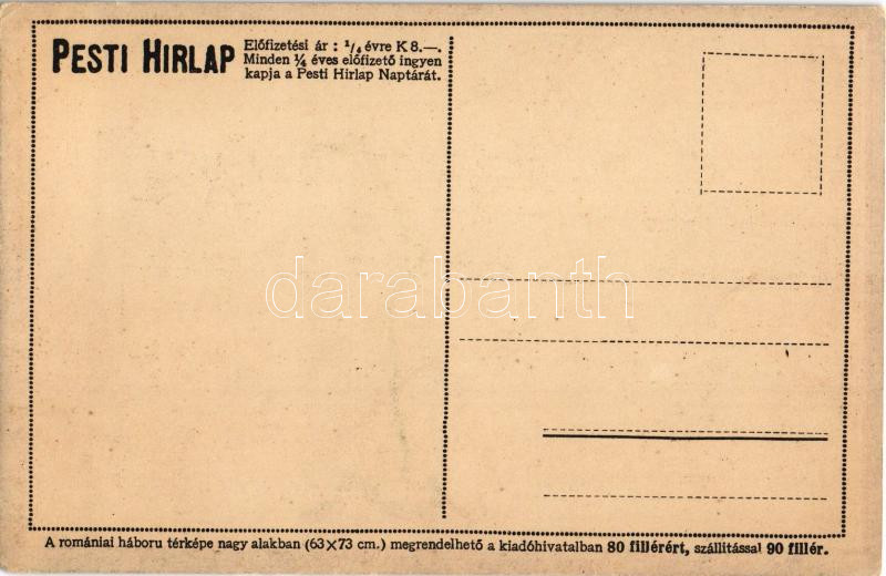 Megnézi Ön naponta a Pesti Hírlap háborús térképeit? A romániai háború térképe. Kiadja a Pesti Hírlap / WWI Map of the Romanian war (EM)<a href="https://www.darabanth.com/hu/nagyaukcio/40/kategoriak~Kepeslapok/Terkep~16504/Megnezi-On-naponta-a-Pesti