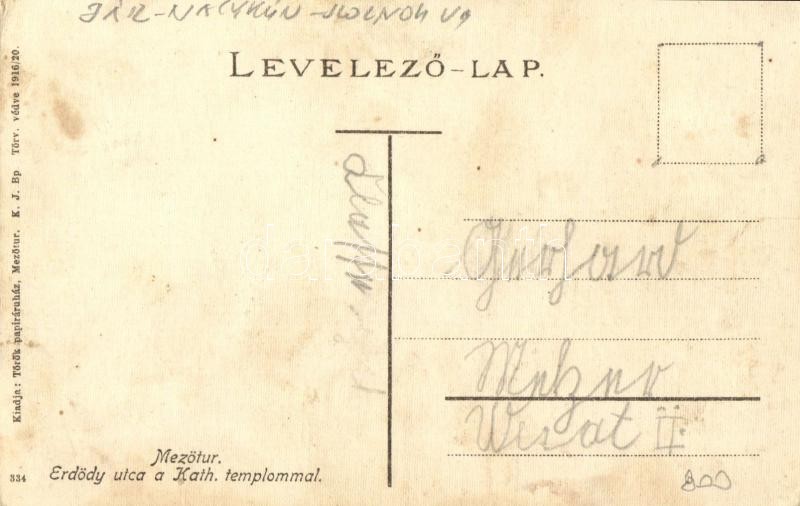 Mezőtúr, Erdődy utca, Katolikus templom. Török papíráruház kiadása (apró szakadás / tiny corner tear)