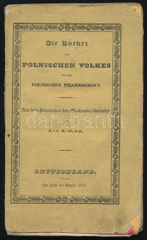 Mickiewicz, Adam (1798-1855): Die Bücher des polnischen Volkes und der polnischen Pilgerschaft. [A lengyel nép és lengyel zarándokság könyvei.] Aus dem Polnischen des Mickiewicz übersetz von P.-J. B.-G..g.r Deutschland [Németország], Im Jahr der Gnade 183