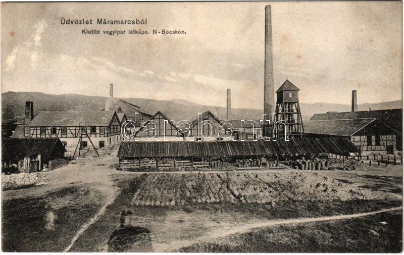 Nagybocskó, Velikij Bicskiv, Velykyy Bychkiv (Máramaros); Klotild vegyipar látképe, gyár. Kaifman Á. és fiai kiadása / chemical factory (EK)<a href="https://www.darabanth.com/hu/nagyaukcio/38/kategoriak~Kepeslapok/Karpatalja~15650/Nagybocsko-Velikij