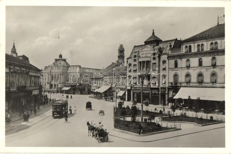 Nagyvárad, Horthy Miklós tér, villamos, Neumann M. és Liszt üzlete / square, tram, shops<a href="https://www.darabanth.com/hu/gyorsarveres/413/kategoriak~Kepeslapok/Erdely~2000007/Nagyvarad-Horthy-Miklos-ter-villamos-Neumann-M-es-Liszt-uzlete-square