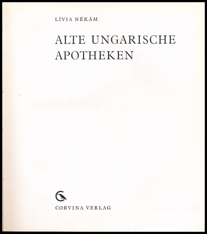 Nékám Lívia: Alte ungarische Apotheken. Bp., 1969, Corvina. Fekete-fehér és színes fotókkal illusztrálva. Német nyelven. Kiadói egészvászon-kötés, kissé szakadt kiadói papír védőborítóban.