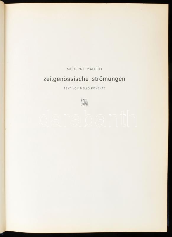 Nello Ponente: Moderne Malerei. Zeitgenössische Strömungen. Geneve (Genf), 1960, Editions d’Art Albert Skira. Reprodukciókkal gazdagon illusztrálva. Német nyelven. Kiadói egészvászon-kötés.<a href="https://www.darabanth.com/hu/gyorsarveres/423/kateg