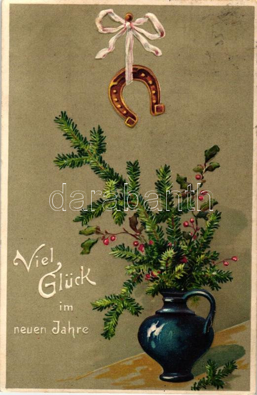 New Year, horse shoe Emb. litho