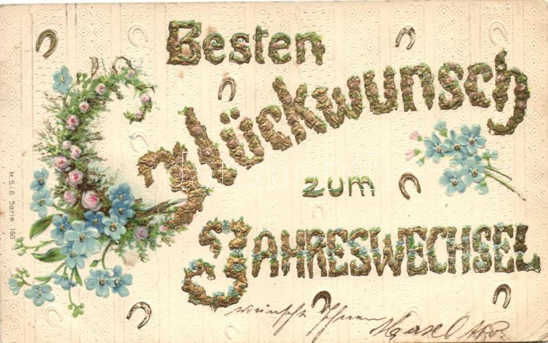 New Year, M.S.i.B. Serie 160. golden decoration, floral Emb. litho (fa)<a href="https://www.darabanth.com/hu/gyorsarveres/421/kategoriak~Kepeslapok/Udvozlolapok-Unnepek~1500051/New-Year-MSiB-Serie-160-golden-decoration-floral-Emb-litho-fa~II1302901/