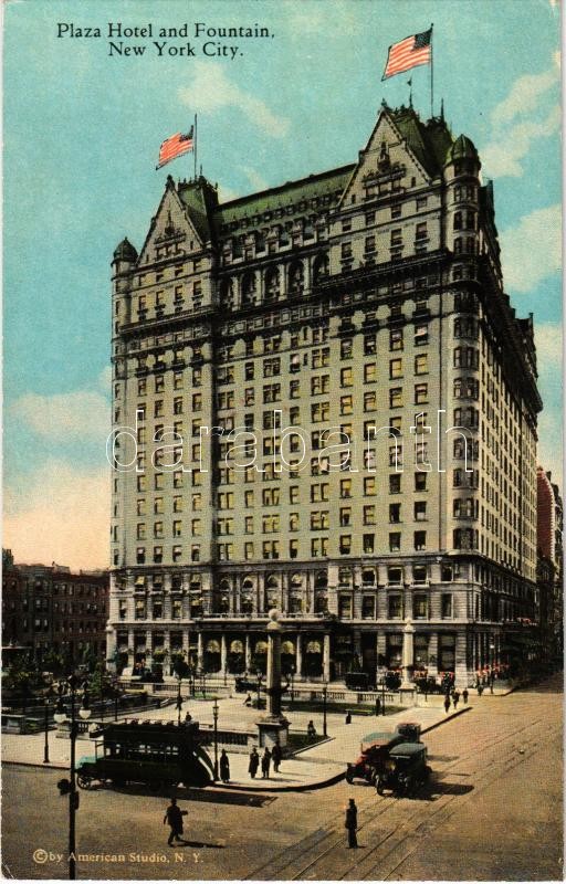 New York, Plaza Hotel and Fountain, autobus, automobiles<a href="https://www.darabanth.com/hu/gyorsarveres/417/kategoriak~Kepeslapok/Amerikai-Egyesult-Allamok~1500041/New-York-Plaza-Hotel-and-Fountain-autobus-automobiles~II2529717/?utm_source=affili