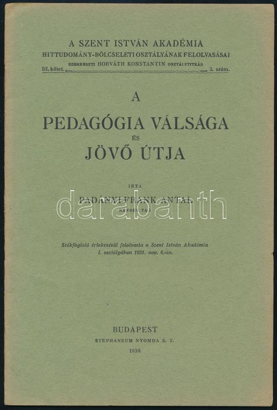 Padányi-Frank Antal: A pedagógia válsága és jövő útja. A Szent István Akadémia hittudomány-bölcseleti osztályának értekezései III. köt. 2. sz. Bp., 1938, Stephaneum-ny., 22 p. Kiadói tűzött papírkötés, bélyegzőkkel.