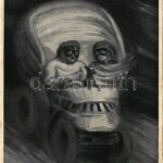 Pár koponyát formázó autóban. Optikai illúziós képeslap / Couple in a skull-shaped automobile. Optical illusion (fl)<a href="https://www.darabanth.com/hu/nagyaukcio/38/kategoriak~Kepeslapok/Muveszlapok~15729/Par-koponyat-formazo-autoban-Optikai-illu