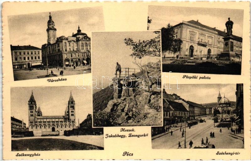 Pécs, Városháza, püspöki palota, Széchenyi tér, Mecsek, Jakabhegy, Zsongorkő<a href="https://www.darabanth.com/hu/gyorsarveres/440/kategoriak~Kepeslapok/Magyarorszag~2000005/Pecs-Varoshaza-puspoki-palota-Szechenyi-ter-Mecsek-Jakabhegy-Zsongorko~II16