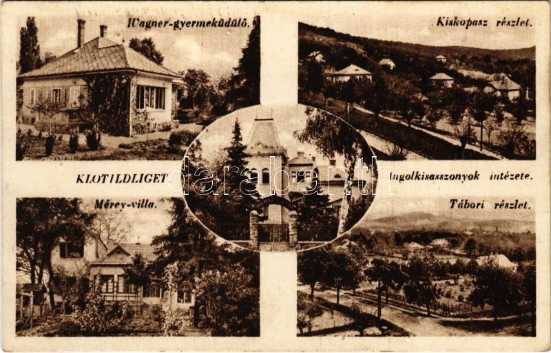 Piliscsaba, Klotildliget; Wagner gyermeküdülő, Kiskopasz részlet, Mérey villa, Angolkisasszonyok intézete, Tábori részlet
