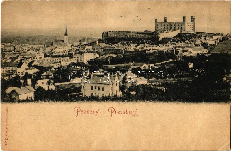 Pozsony, Pressburg, Bratislava; látkép a várral. Römmler & Jonas / general view with castle (ragasztónyom / glue marks)