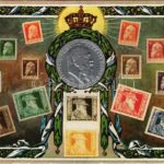 Prinzregent Luitpold von Bayern / Luitpold bajor királyi herceg. Dombornyomott érme és bélyegek / Luitpold, Prince Regent of Bavaria. Embossed coin and stamps.Ottmar Zieher No. 149. Art Nouveau