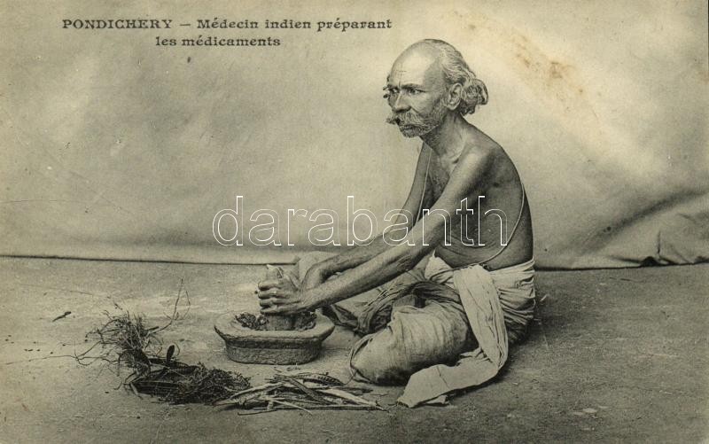 Puducherry, Pondichéry; Médecin indien préparant les médicaments / native doctor preparing drugs, Indian folklore<a href="https://www.darabanth.com/hu/gyorsarveres/417/kategoriak~Kepeslapok/Folklor~1500022/Puducherry-Pondichery-Medecin-indien-prepar