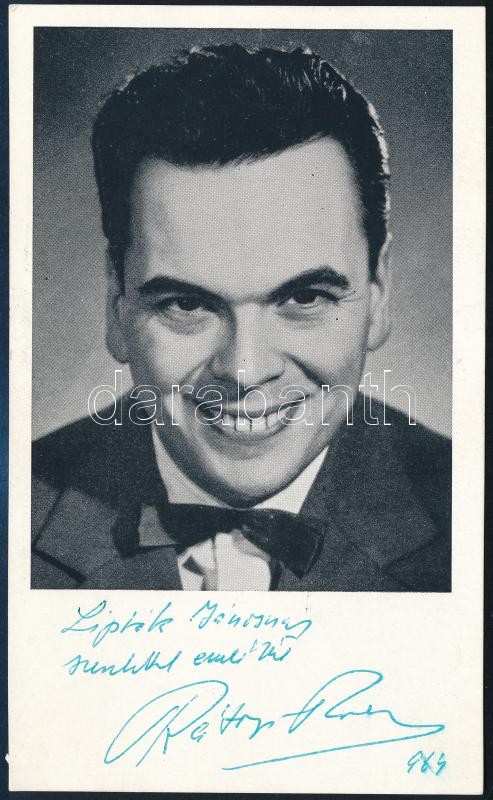 Rátonyi Róbert (1923-1992) színész saját kezű dedikációja és aláírása egy fotónyomaton<a href="https://www.darabanth.com/hu/gyorsarveres/424/kategoriak~Mutargy-papirregiseg-egyeb/Alairas~500020/Ratonyi-Robert-1923-1992-szinesz-sajat-kezu-dedikacioja