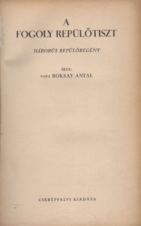 Repülés, aviatika. Boksay Antal, vitéz Repülés, aviatika. Boksay Antal, vitéz: A fogoly repülőtiszt. Háborús repülőregény.