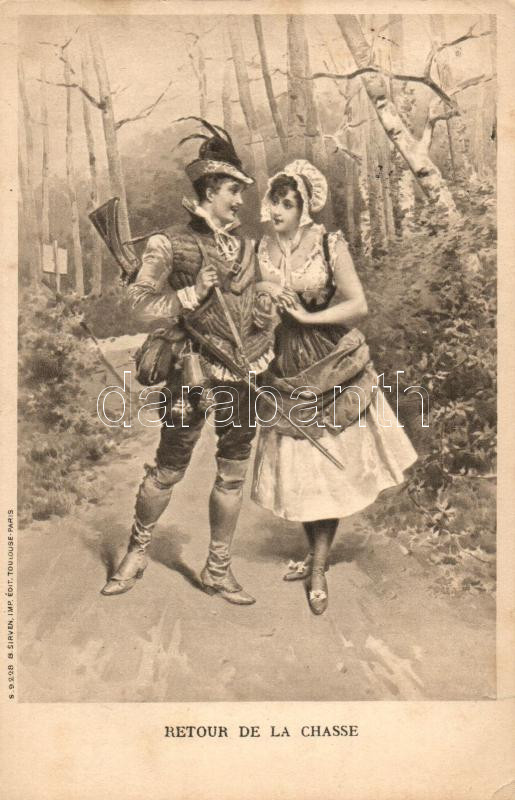 ‘Retour de la Chasse’ / return from the hunt, hunter with lady (b)<a href="https://www.darabanth.com/hu/gyorsarveres/414/kategoriak~Kepeslapok/Vadasz~1500086/Retour-de-la-Chasse-return-from-the-hunt-hunter-with-lady-b~II1243439/?utm_source=affiliate