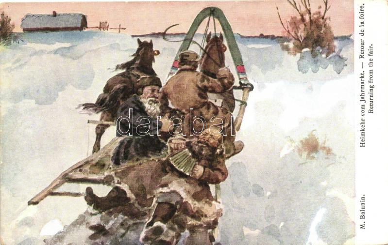 Returning from the fair, Modern Russian Painters, T.S.N. – R.M. No. 71, s: M. Balunin<a href="https://www.darabanth.com/hu/gyorsarveres/415/kategoriak~Kepeslapok/Muveszlapok~1000072/Returning-from-the-fair-Modern-Russian-Painters-TSN–RM-No-71-s-M-B