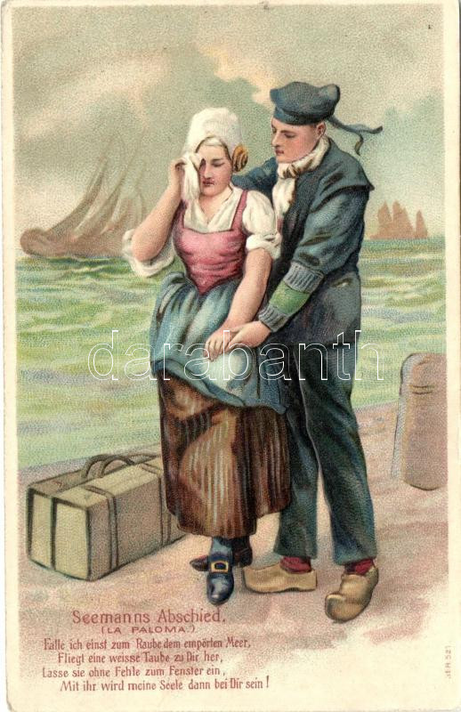 Seemanns Abschied / Romantic sailor postcard, Emb. litho