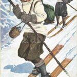 Síelők. Humoros téli sport művészlap / Skiing, humour. Winter sport art postcard. Wintersport No. 9. No. 4026.<a href="https://www.darabanth.com/hu/nagyaukcio/38/kategoriak~Kepeslapok/Sport~15738/Sielok-Humoros-teli-sport-muveszlap-Skiing-humour-Win