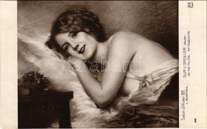 Sur L’Oreiller (étude). Salon d’Hiver 1912. A. Noyer Paris / Erotic nude lady art postcard s: L. Muraton<a href="https://www.darabanth.com/hu/gyorsarveres/417/kategoriak~Kepeslapok/Erotika~1500020/Sur-LOreiller-etude-Salon-dHiver-1912-A-Noyer-Paris-