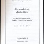 Szalay Szilárd: Akit nem lehetett elhallgattatni. ELhangzott igehirdetések a Lukács Evangéliuma alapján. Lukács 18,18 – 21,38. Vörösberényi igehirdetések 9. Vörösberény, 2002., Vörösberényi Református Egyházközösség. Kiadói papírkötés.<a href="https