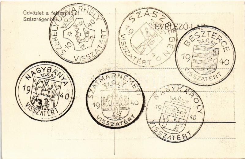 Szászrégen, Reghin; Fő tér, Crema Nivea és Caurom cipőbolt, autóbusz. Üdvözlet a felszabadult Szászrégenből / main square, shops + ‘visszatért’ So. Stpl<a href="https://www.darabanth.com/hu/nagyaukcio/38/kategoriak~Kepeslapok/Erdely~15646/Szaszregen