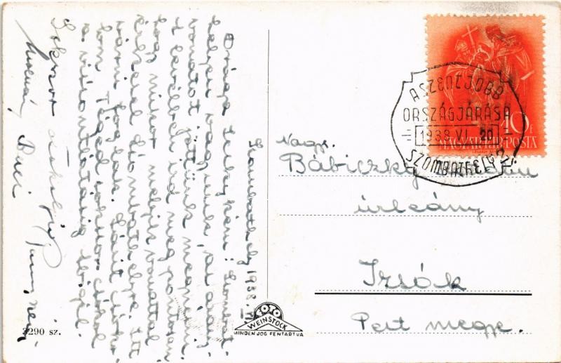 Szombathely, részlet a püspöki palotával + ‘A Szent Jobb Országjárása 1938. VI. 20. Szombathely’ So. Stpl. (EK)<a href="https://www.darabanth.com/hu/gyorsarveres/414/kategoriak~Kepeslapok/Magyarorszag~1500003/Szombathely-reszlet-a-puspoki-palotaval-