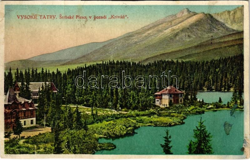 Tátra, Magas-Tátra, Vysoké Tatry; Strbské pleso v pozadí Kriván / Csorba-tó / lake (vágott / cut)<a href="https://www.darabanth.com/hu/gyorsarveres/416/kategoriak~Kepeslapok/Felvidek~2000010/Tatra-Magas-Tatra-Vysoke-Tatry-Strbske-pleso-v-pozadi-Kriv