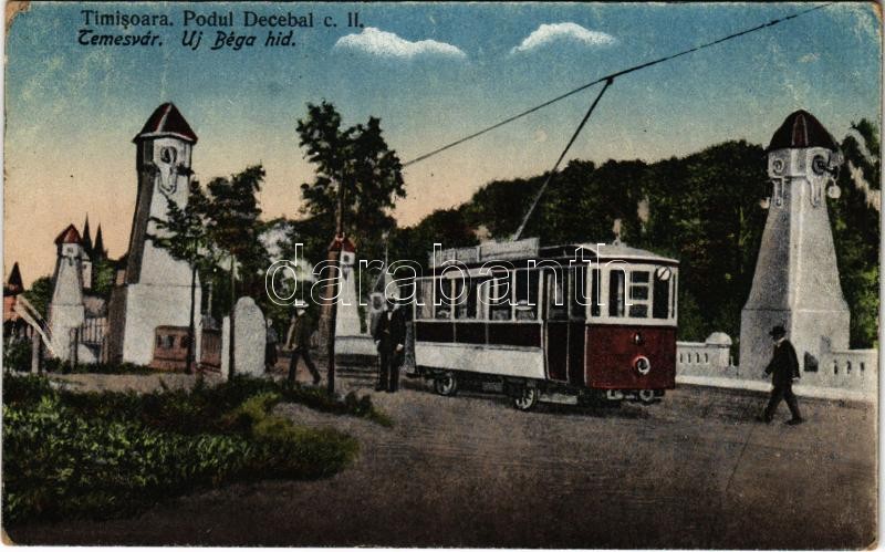 Temesvár, Timisoara; Új Béga híd, villamos / Podul Decebal c. II. / bridge, tram (fl)<a href="https://www.darabanth.com/hu/nagyaukcio/38/kategoriak~Kepeslapok/Erdely~15646/Temesvar-Timisoara-Uj-Bega-hid-villamos-Podul-Decebal-c-II-bridge-tram-fl~II2