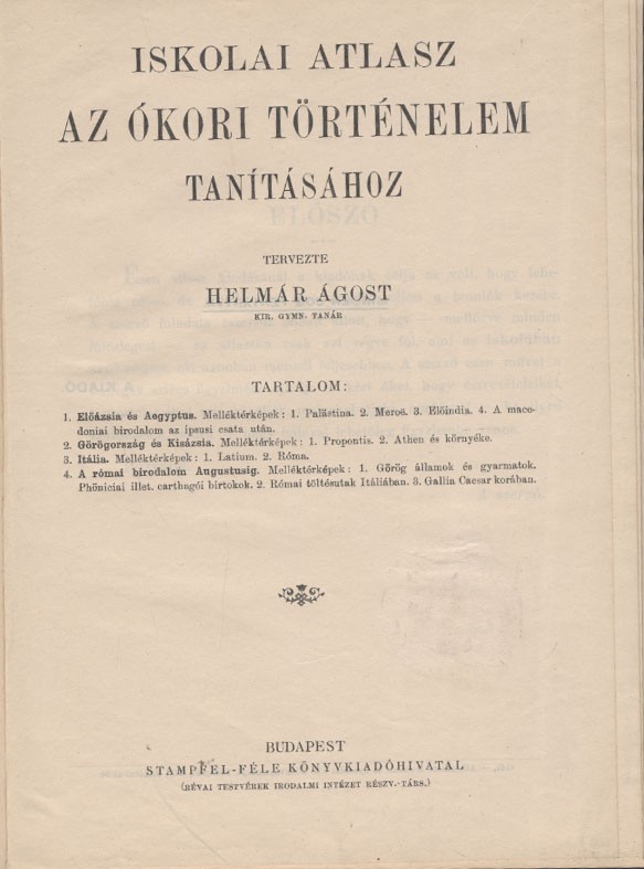 Térkép, atlasz. Helmár Ágost Térkép, atlasz. Helmár Ágost: Iskolai atlasz az ókori történelem tanításához.